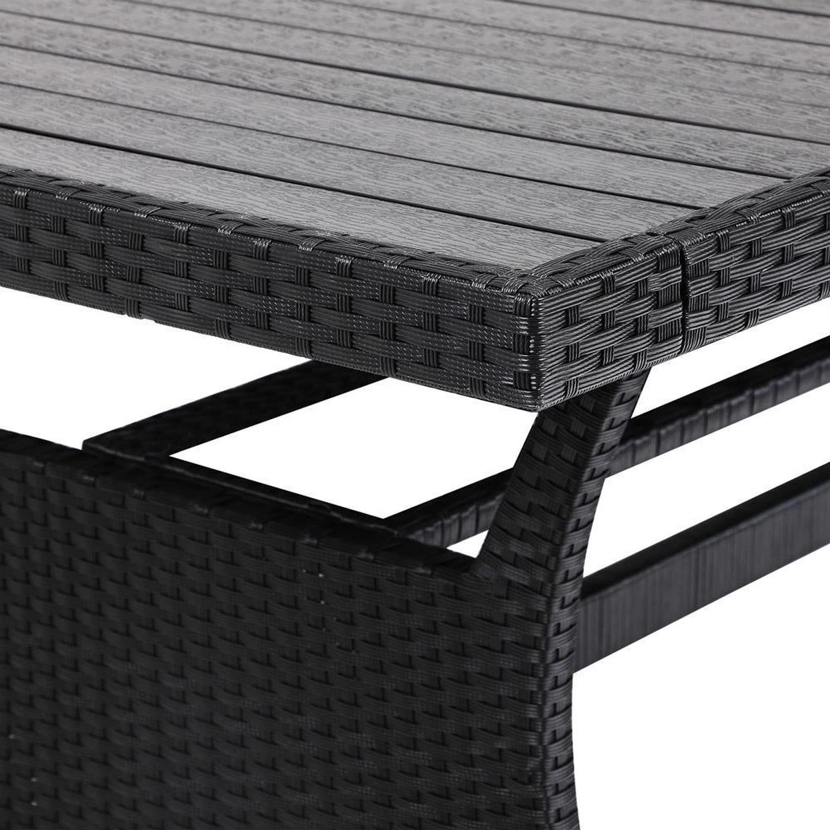 Deze exclusieve polyrattan tuintafel 190 x 90 x 75 cm is voorzien van een zeer robuust en bestendig tafelblad van WPC in houtlook. Dit betekent dat de tafel goed beschermd is tegen weer en wind en ideaal is voor in de tuin, op het terras of binnenshuis. Het tafelframe is gemaakt van stevig, gepoedercoat staal en is zelfs bestand tegen zwaar gebruik. De tafelpoten zijn individueel in hoogte verstelbaar via compensatieschroeven, zodat de tafel ook op oneffen oppervlakken stevig staat. Het polyrattan werd speciaal ontwikkeld voor tuinmeubelen. Het is UV-lichtbestendig, vuilafstotend en gemakkelijk te reinigen.