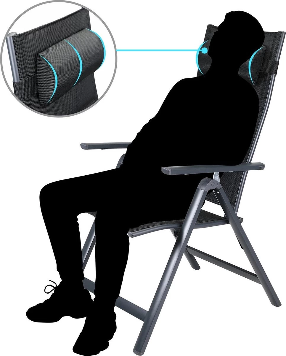 De exclusieve Bern Premium aluminium tuinstoel met hoge rugleuning heeft een 7-voudig verstelbare rugleuning, zodat jij je comfortabel kunt ontspannen. De dikkere bekleding bespaart een extra tuinkussen. Het hoofdkussen kun je dmv klittenband bevestigen en ondersteunt jouw hoofd. Maar je kunt het er ook af halen en als ondersteunend lendenkussen gebruiken.