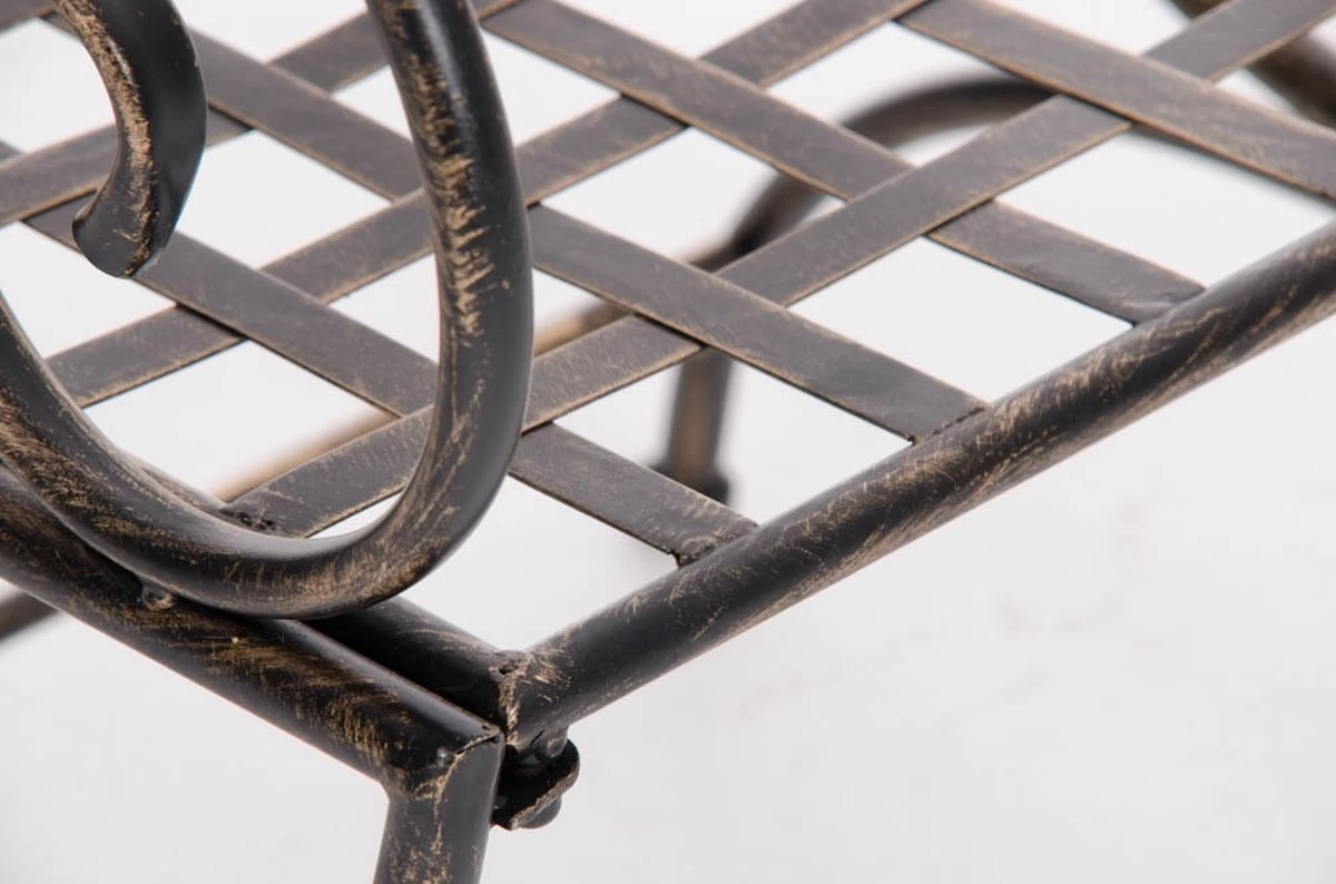 Het product is met de hand uit ijzer vervaardigd en daardoor extreem stabiel. Het oppervlak is handmatig met een laag antieke patina veredeld. Dit extravagant designmeubel is helemaal nieuw en past tevens uitstekend bij alle metalen tafels van onze shop.