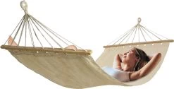 Merkloos Hangmat – Incl Bevestigingshaak – Met Spreidstok – Beige – Comfortabel – Met Karabijnhaak