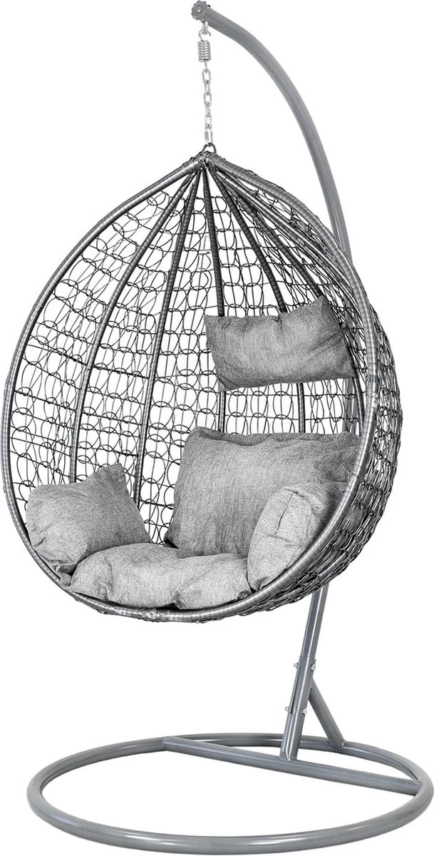 Deze mooie grijze hangstoel is compleet met grijze hangstoel standaard en grijze kussens. De ei stoel zorgt ervoor dat je helemaal tot rust komt. Een comfortabele egg hangstoel / schommelstoel waarin het lezen van boeken, ontspannen voor de tv of gewoon ontspannen in de tuin nog leuker wordt!