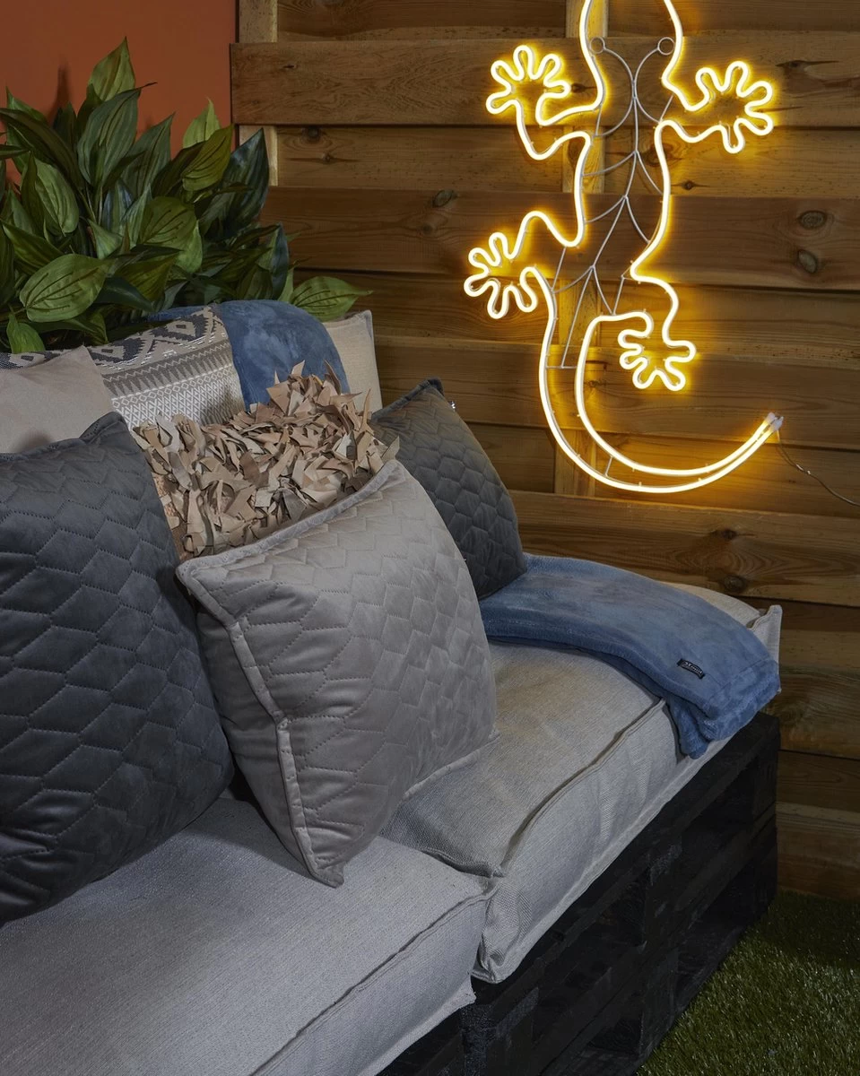 Maak van een simpele pallet een heerlijke zitplaats met de Mick palletkussens van In The Mood Collection. Ideaal voor op een balkon of terras! De set bestaat uit een zit- en een ruggedeelte voor extra comfort. Het buitenmateriaal is gemaakt van polyester, de binnenkant van foam. Door de grove textiel textuur en de neutrale, beige kleur zien ze er erg mooi uit. De kussens zijn waterafstotend, maar je kunt ze na gebruik het beste in een droge ruimte opbergen. Zo kun je er nog jarenlang van genieten! Daarnaast is de hoes ook wasbaar op 30 graden. Let op: polyester is erg kleurvast, maar onder invloed van zonlicht is verkleuring toch mogelijk. Het rugkussen heeft een afmeting van 120 cm breed, 40 cm hoog en ongeveer 12 cm dik. Het zitgedeelte is ook 120 cm breed, 80 cm diep en ongeveer 12 cm dik. Geïnteresseerd in meer? De palletkussens zijn verkrijgbaar in verschillende kleuren en stoffen.