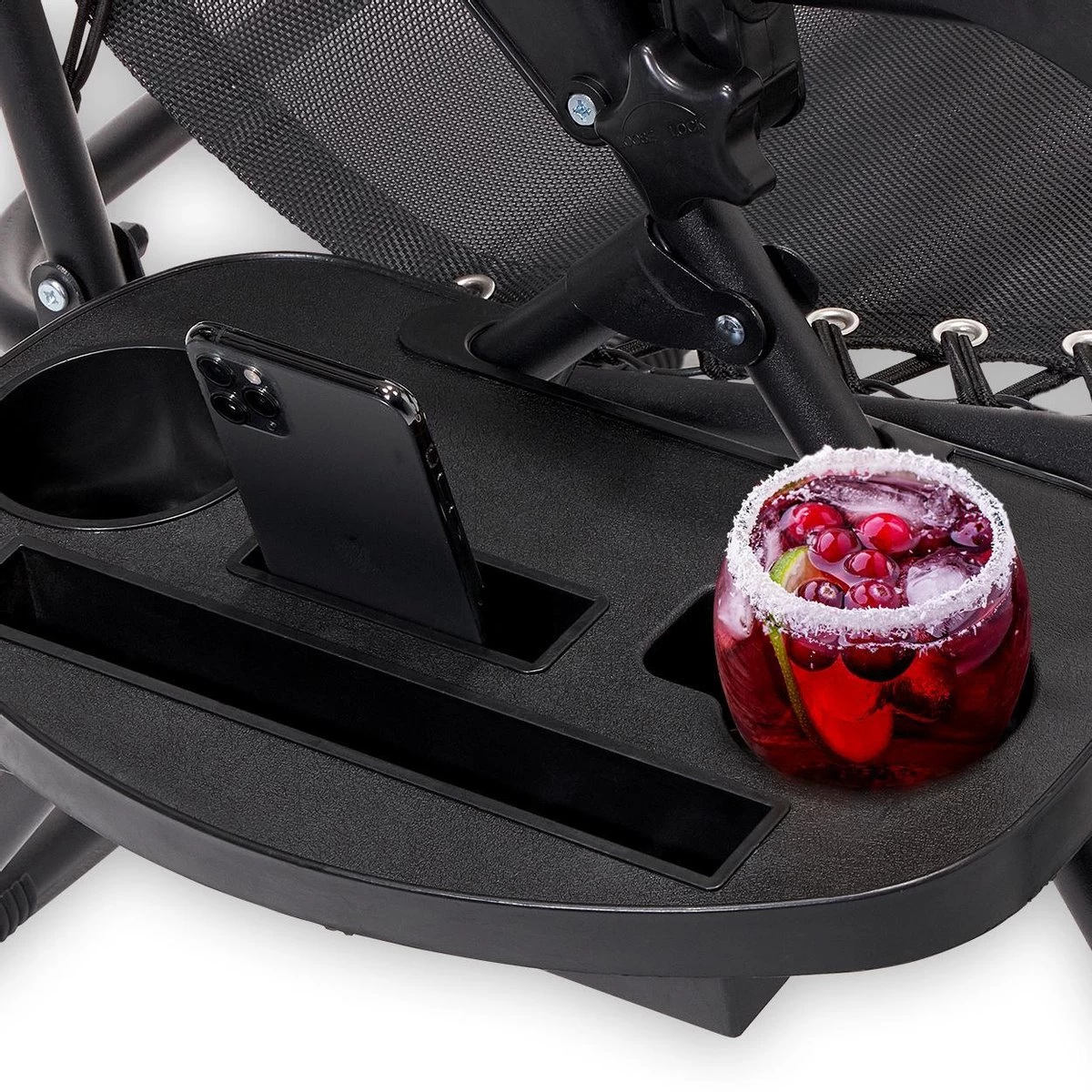 De LifeGoods verstelbare ligstoelen komen inclusief een handig tafeltje met beker- en telefoonhouder. Bevestig de tafel aan je stoel en je hebt altijd je koffie, biertje of ander lekker koud drankje bij de hand. Zet de telefoon in de houder en luister naar je favoriete muziek of podcast. Daarnaast hebben de stoelen een 6 cm dik hoofdkussen dat je op de gewenste hoogte kan bevestigen. Perfect om lekker te luieren!