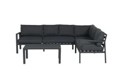 Loungeset 5 Plaatsen Van Aluminium En Eucalyptus – NAZCA – Antraciet Structuur, Lichtgrijs Kussens