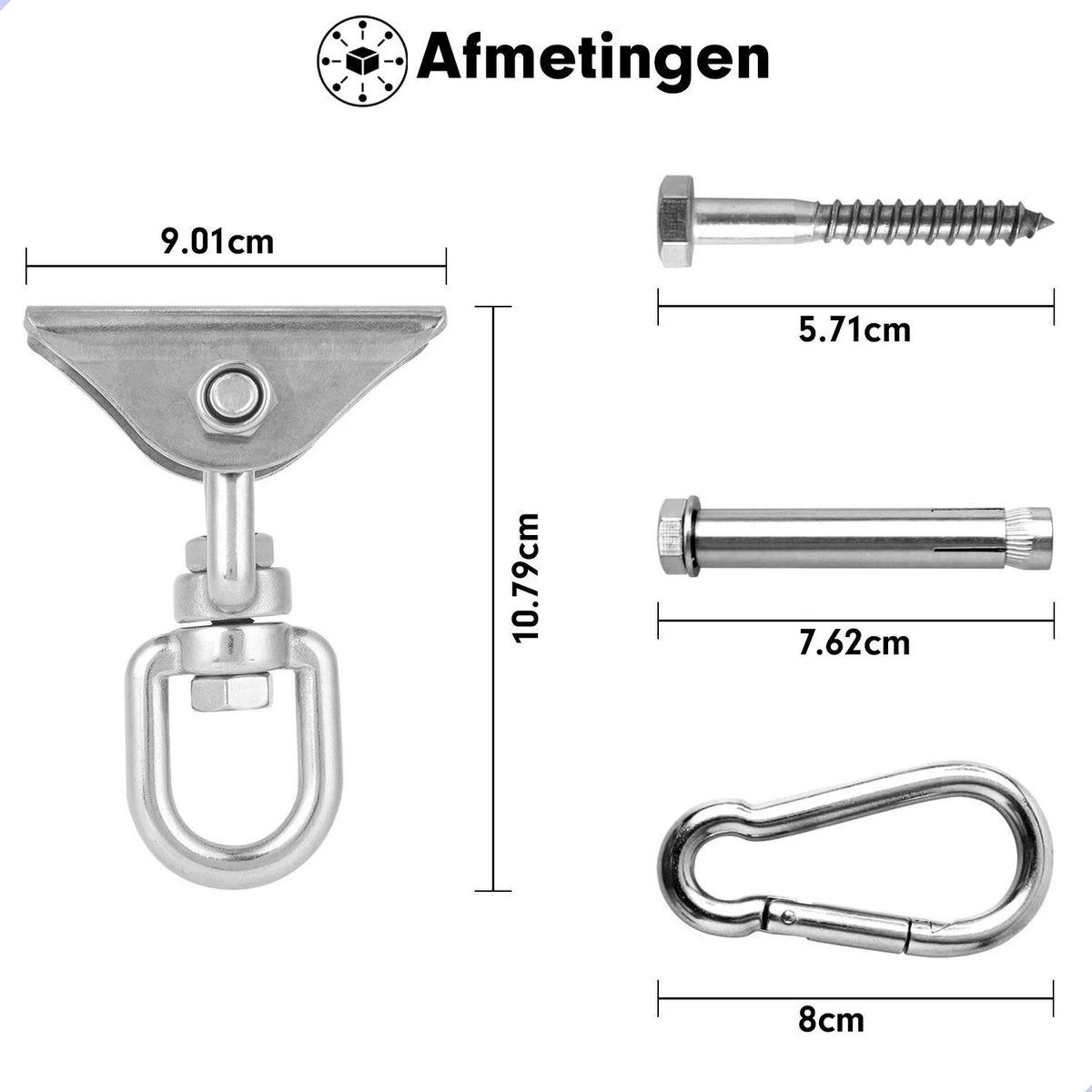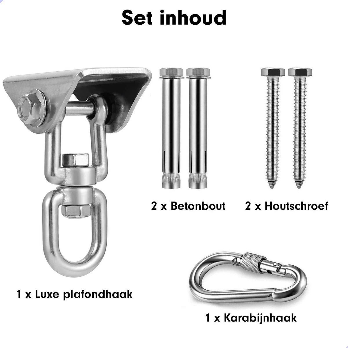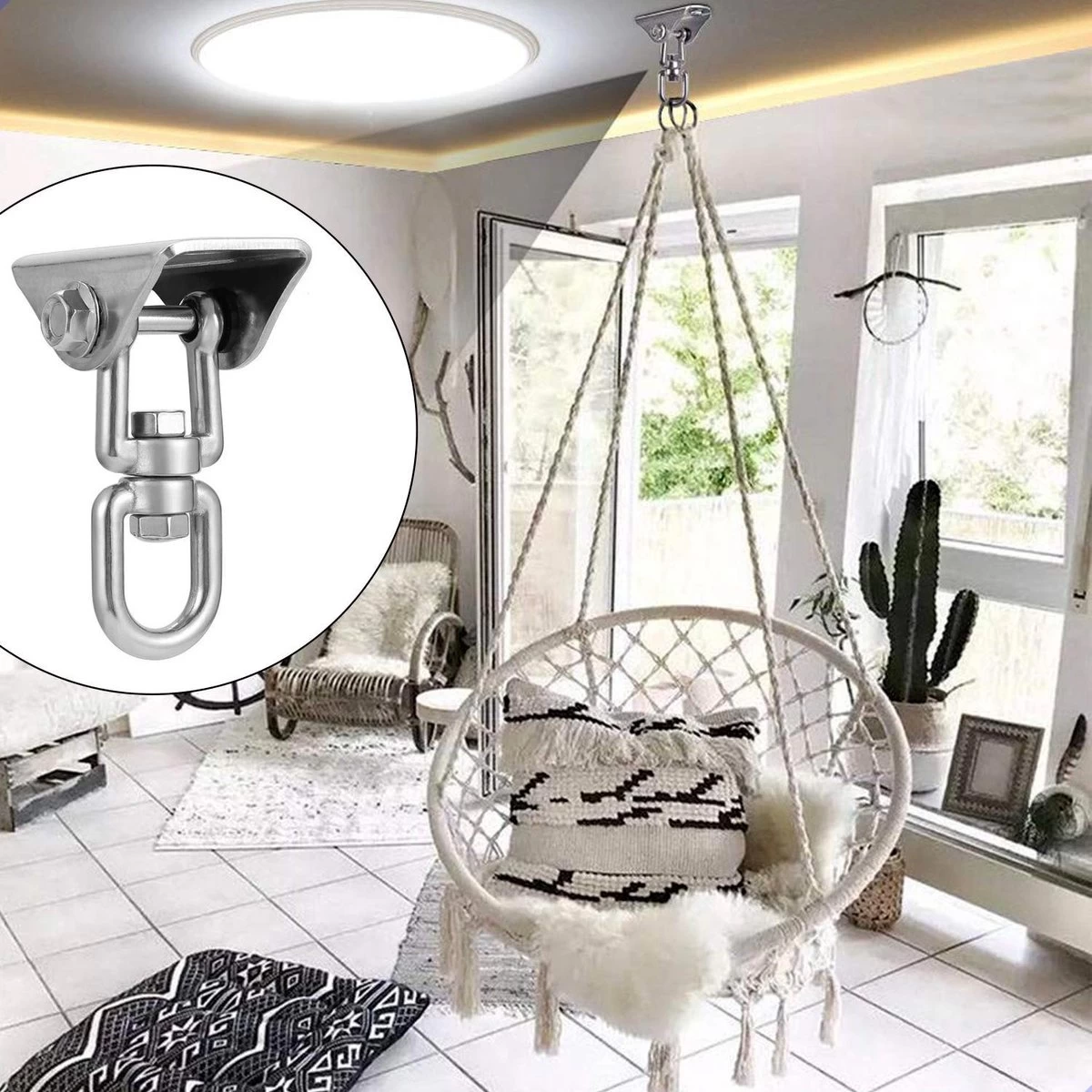 Luxe Ophangsysteem – 180° Schommelen, 360° Roteerbaar – Plafondhaak – Ophanghaak – Hangstoel Buiten – Hangstoel Binnen – Schommelstoel – Schommel – Bokszakken – RVS – Nederlandse Handleiding –
