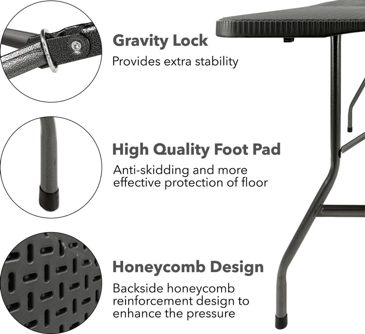 MaxxGarden Vouwtafel – Zwart – Rotanlook – 180x75x74 Cm