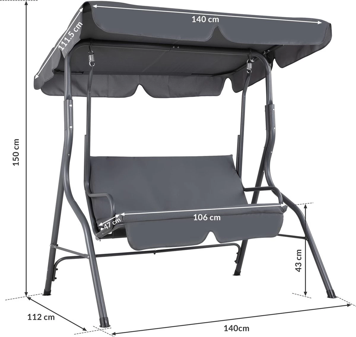 - Totale afmetingen (BxDxH): 140 x 112 x 150 cm