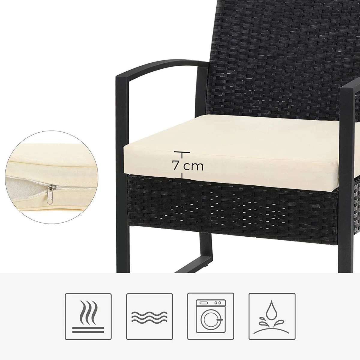 Songmics Tuinmeubelset, 3-delige Set, Van Polyrotan, Voor Outdoor, Terras, Balkon, Tuin, Eenvoudige Montage, Bijzettafel En 2 Stoelen, Zwart-beige