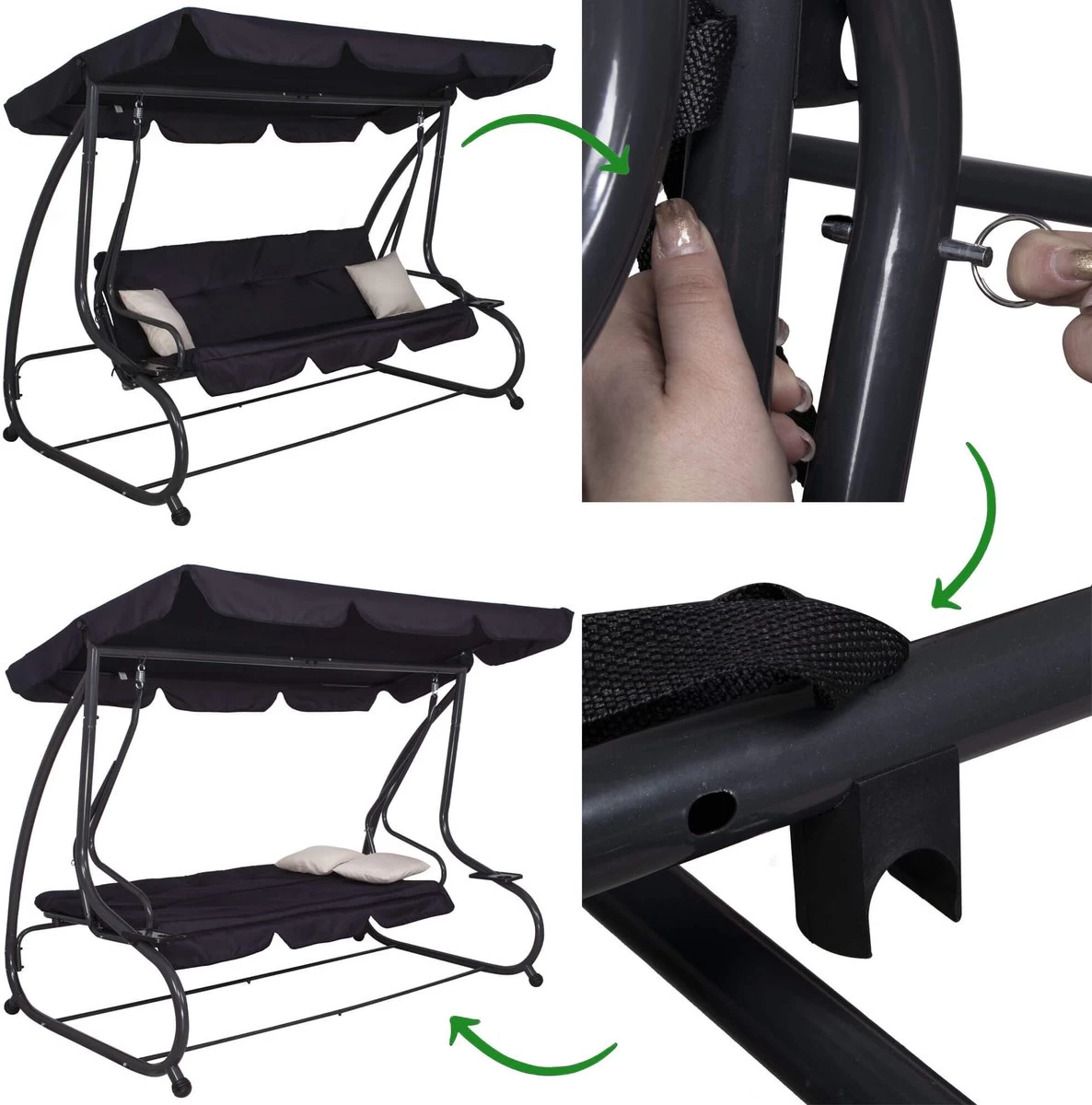 Gun jezelf een heerlijk relaxmomentje in de schommelbank van Springos. De schommel is gemaakt van de beste materialen en is van hoogwaardige kwaliteit. Deze comfortabele 3-zits schommelbank wordt geleverd met 2 zachte kussens die niet alleen het gebruiksgemak verhogen, maar het ziet er ook nog eens gezellig uit.